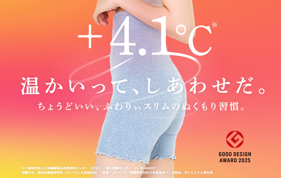 ふわりぃスリムは、独自開発の「+4.1℃」のオリジナル特殊繊維を採用した温活インナー。