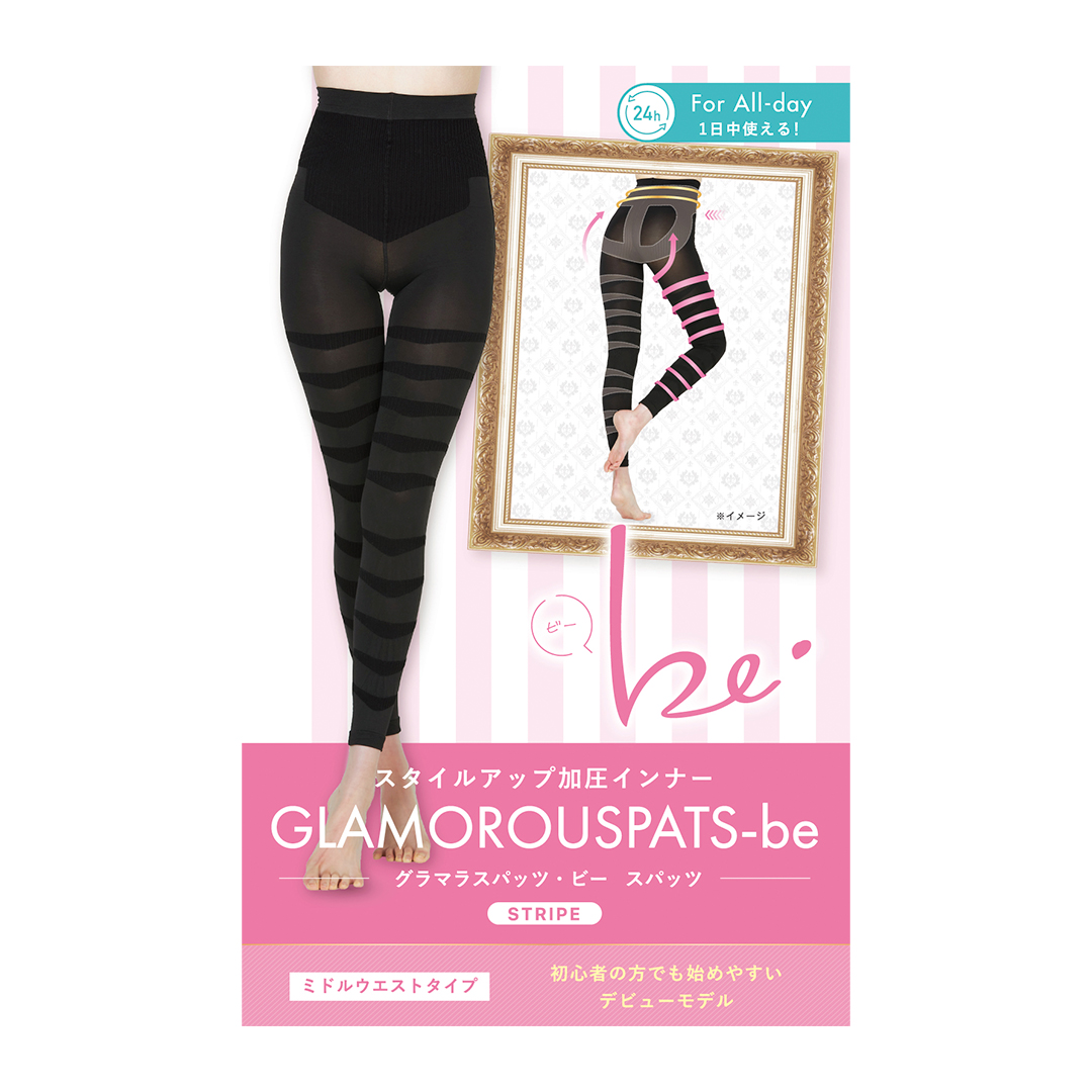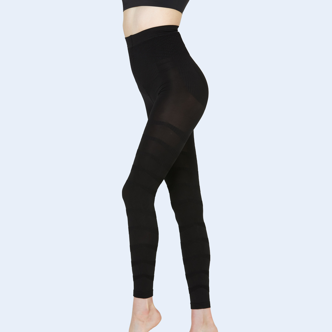 ストライプタイプは、独自の段階圧設計「強圧編みテーピング加工」により、着心地の良さとサポート力のバランスを両立。履くだけでお腹から足首までをすっきりとした美しいシルエットへ導きます。