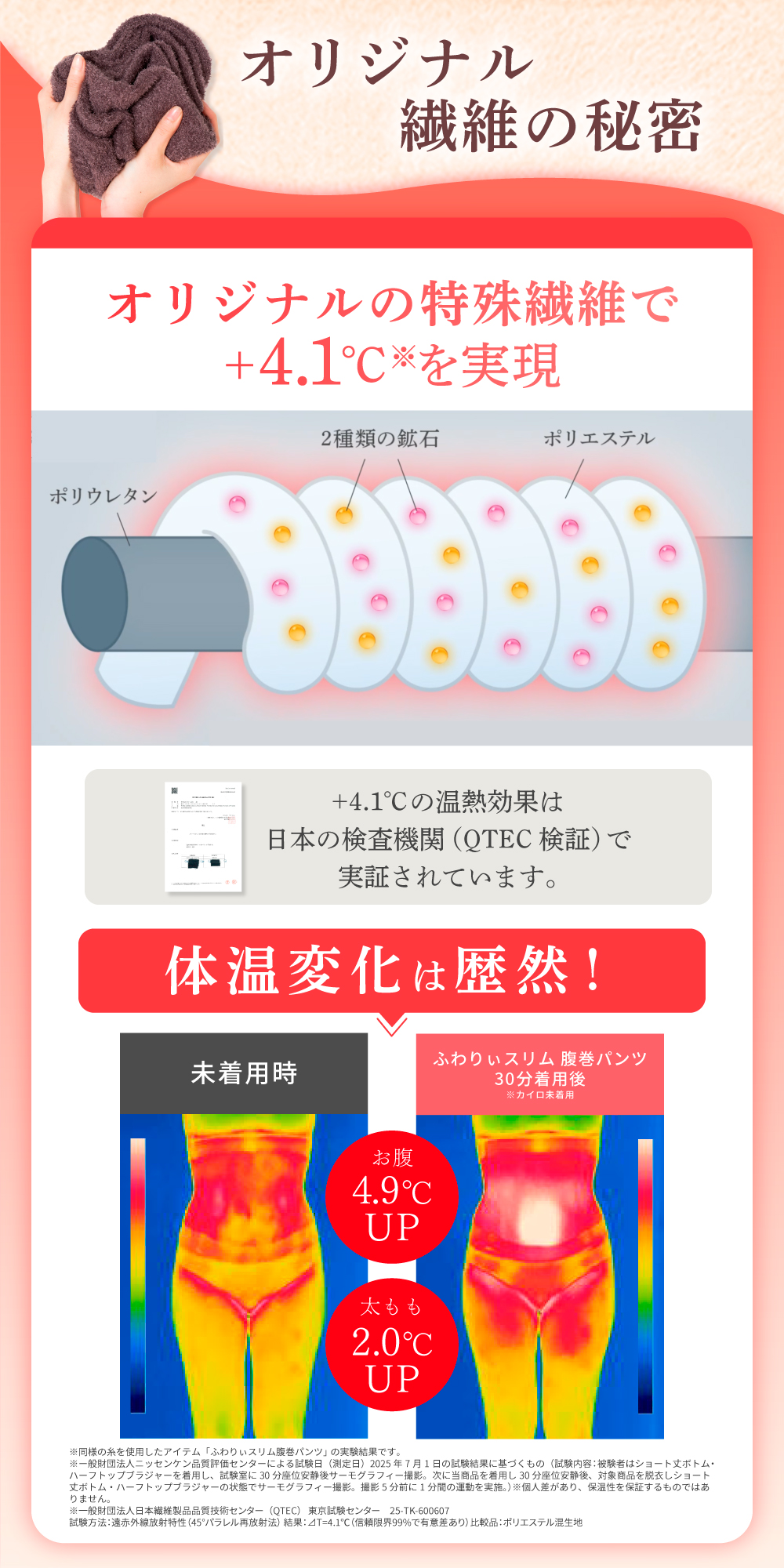 通常タイプより長めの33cm丈で、冷えやすい腰まわりまでをしっかりカバー。