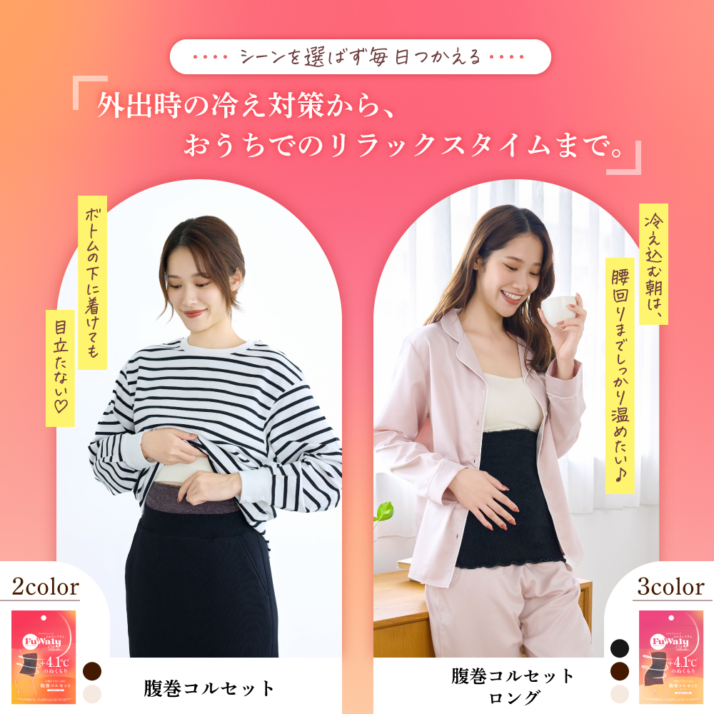お腹から腰までしっかり守る、ロング丈の腹巻コルセット。