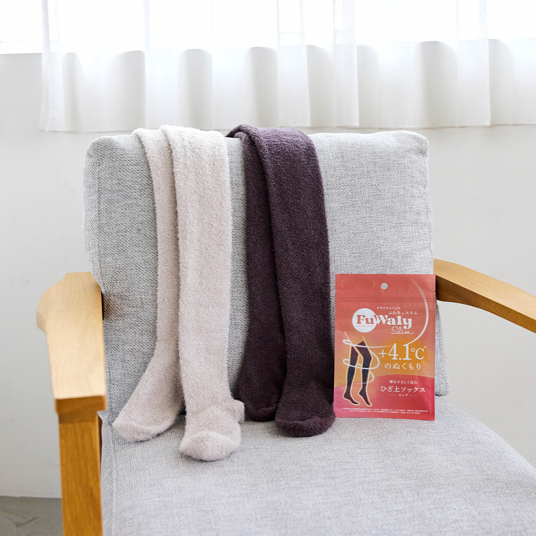 太ももまですっぽり包みこむ、ロング丈のぬくもりソックス。