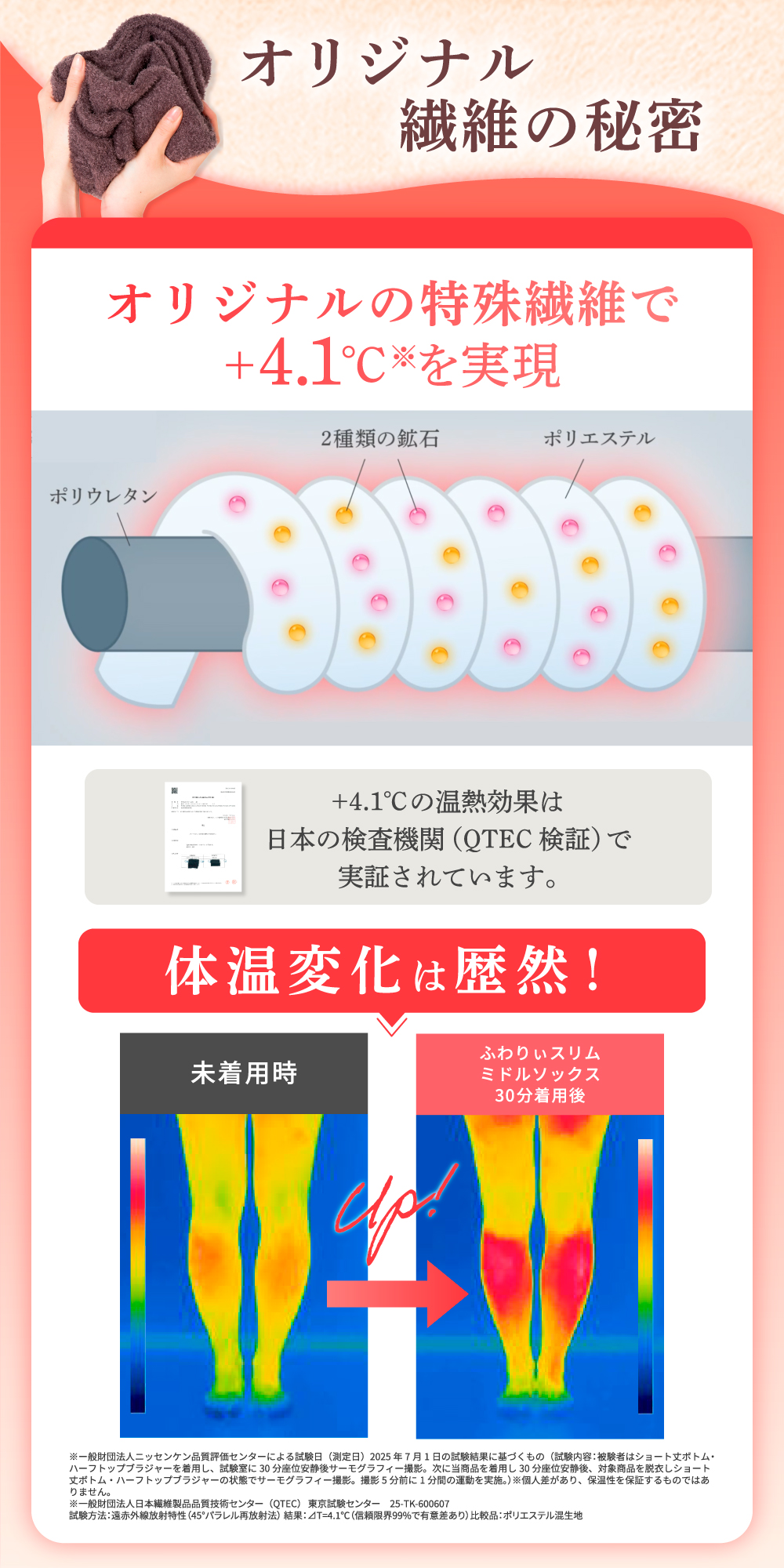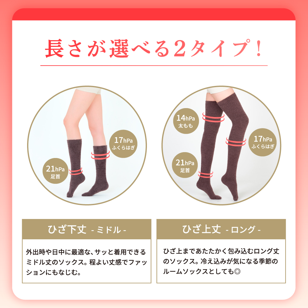 やさしくフィットしながら冷えやすい脚全体をサポートします。