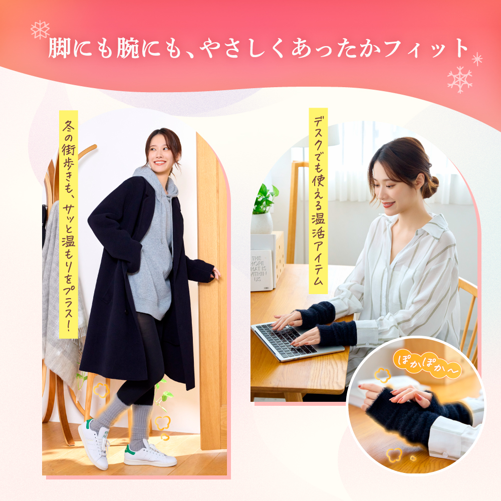 脚にも腕にも使える2WAY設計のあったかウォーマー。