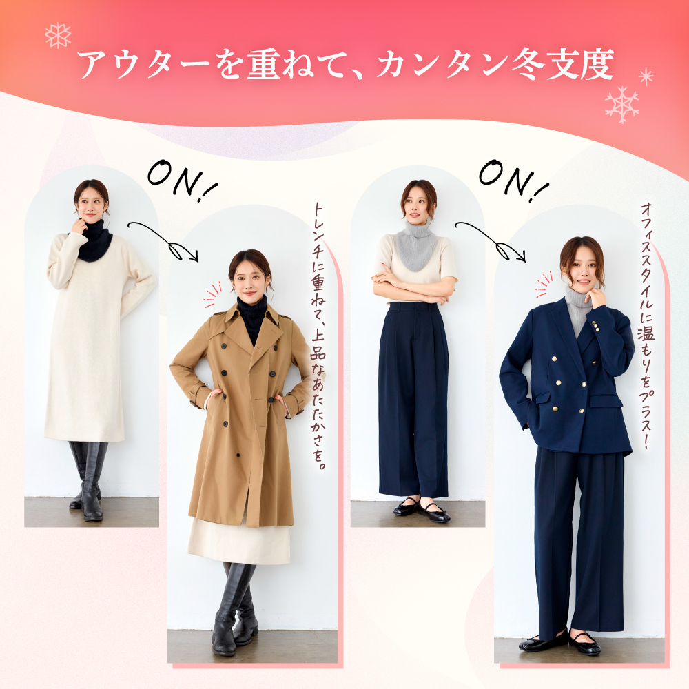 着脱できるタートルネックのように使えるネックウォーマーです。