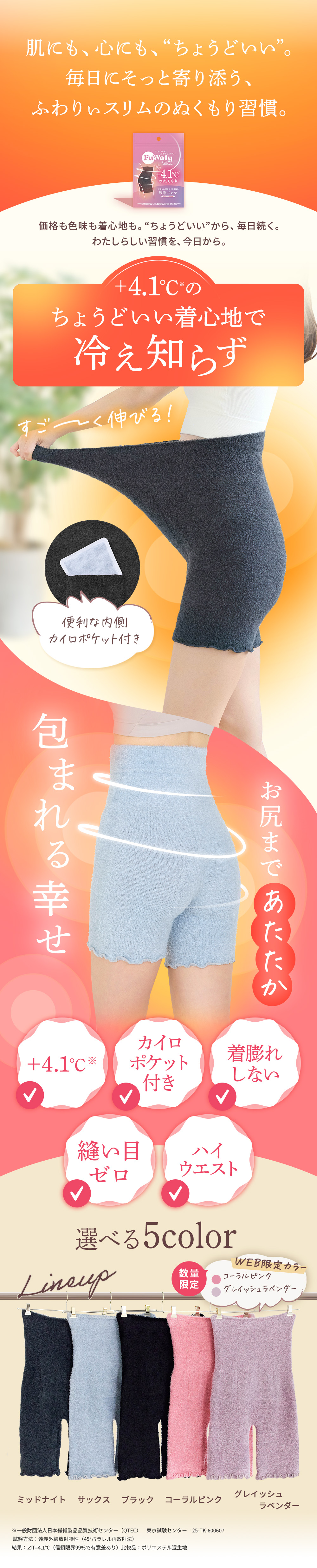 着ぶくれしにくい設計で、日中のインナーとしても就寝時の温活アイテムとしても活躍します。