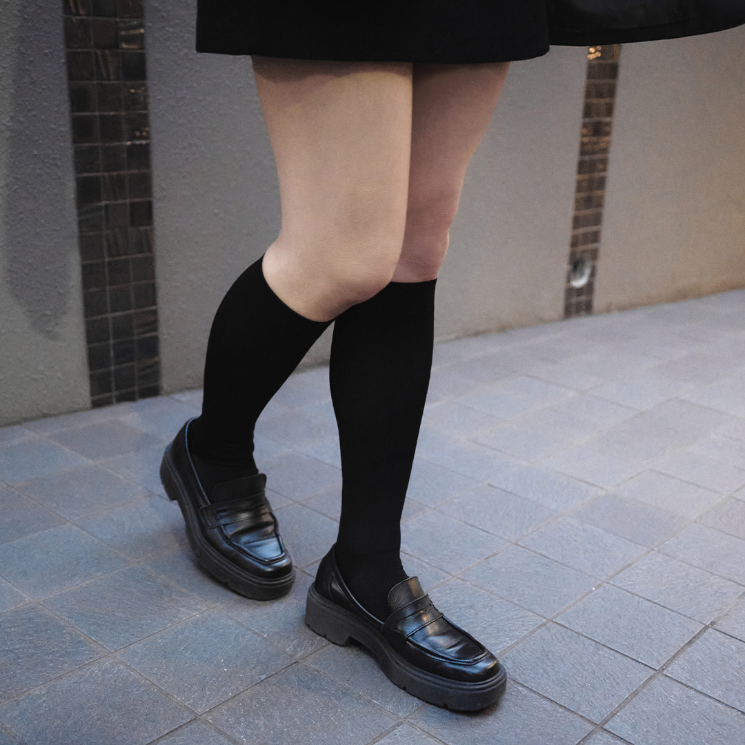 独自の段階圧設計で足首からふくらはぎまでしっかりサポートし、スッキリとした美脚ラインへ導きます。履きやすさと快適性を両立しているため、長時間の着用もストレスフリー。日常に無理なく取り入れられる、新しい“秒メンテ”ソックスです。