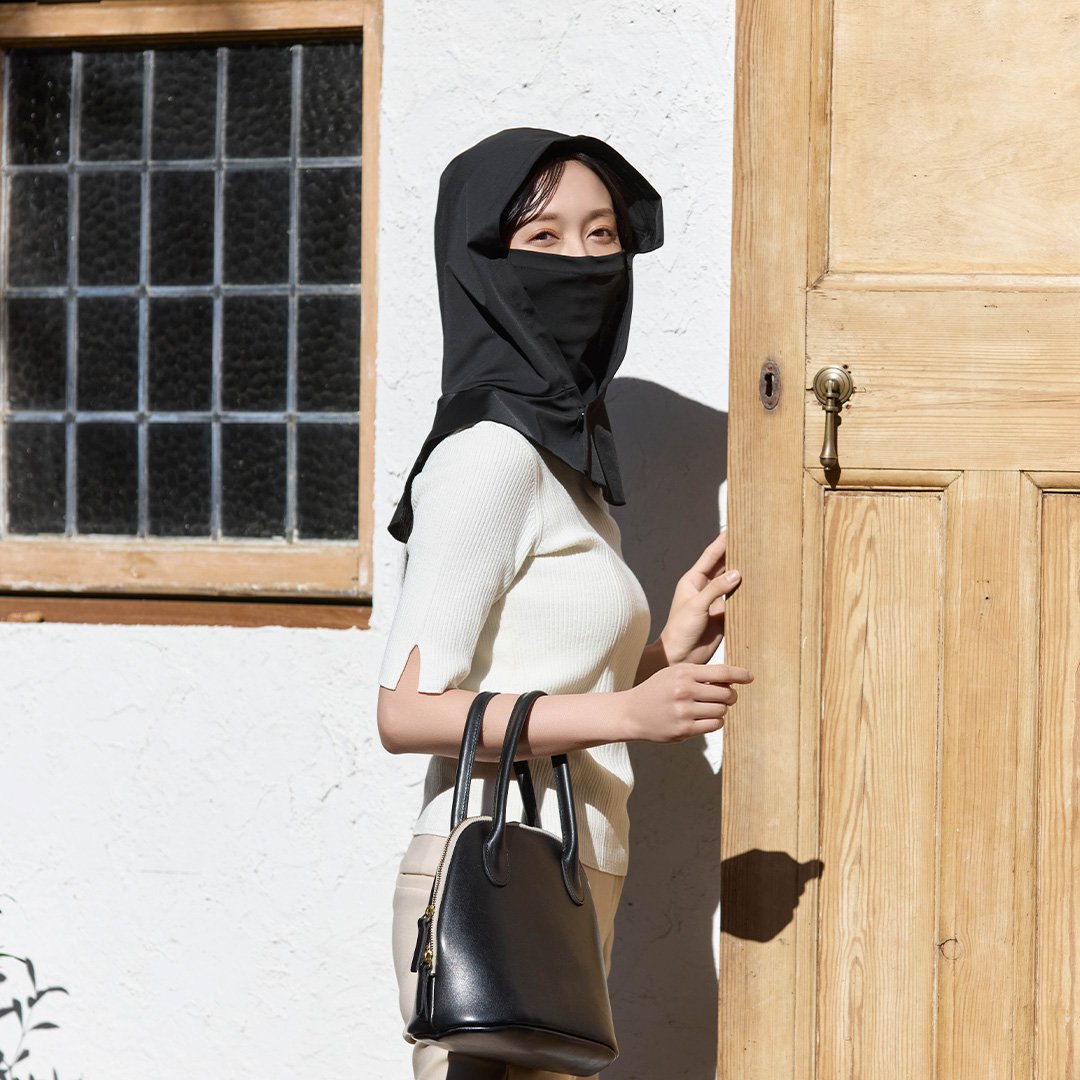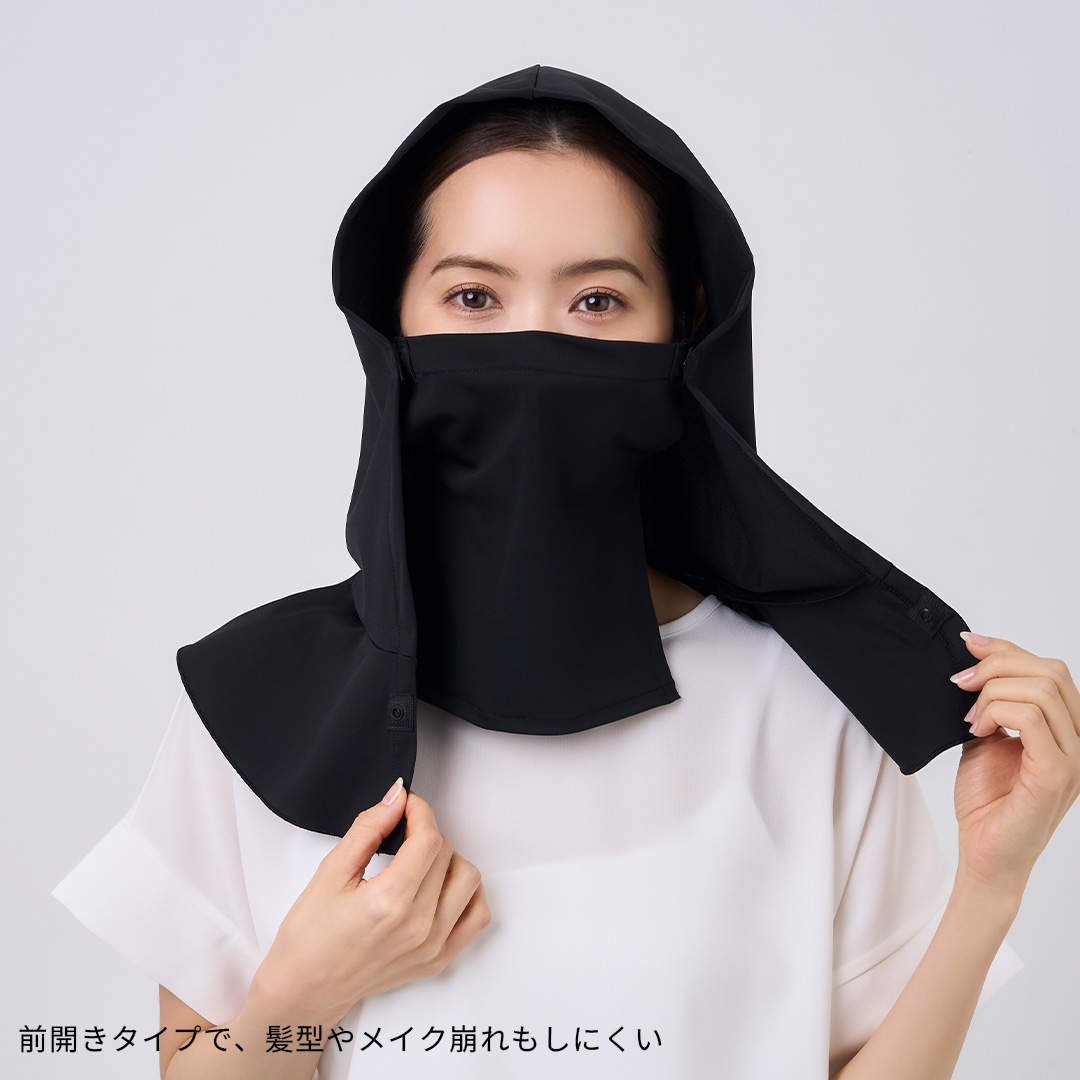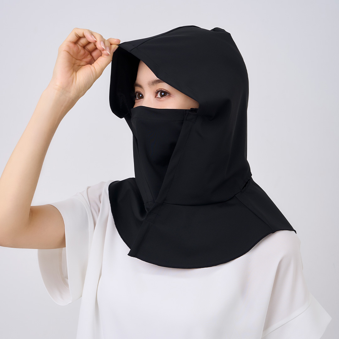 頭から首・肩・口元までを広くカバーし、日差しが気になる季節の外出を快適にサポートするバラクラバです。