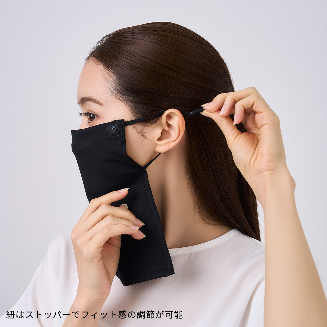 2:口や鼻をふさがない位置を確認し、ストッパー等でフィット感を調整します。