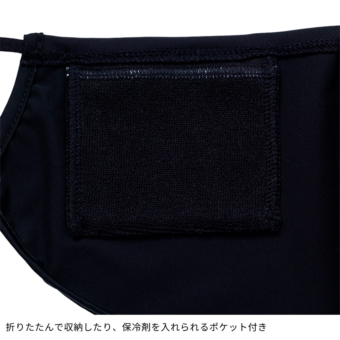ひんやりとした触感の生地を採用し、ポケット部に保冷剤を入れて使える設計。ストッパーでフィット感を調整しやすく、持ち運びにも便利なコンパクト仕様です。